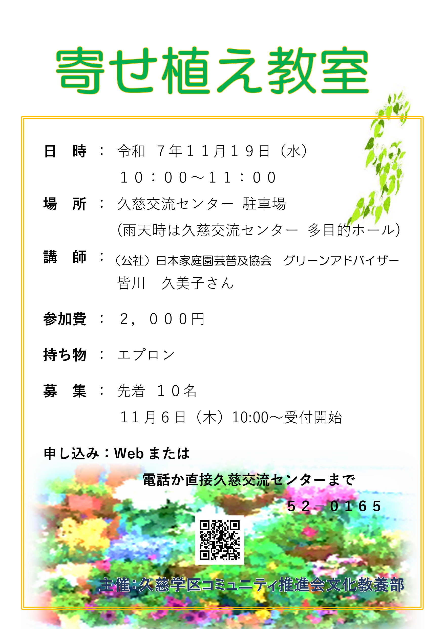 講 師:(公社)日本家庭園芸普及協会グリーンアドバイザー 皆川久美子さん