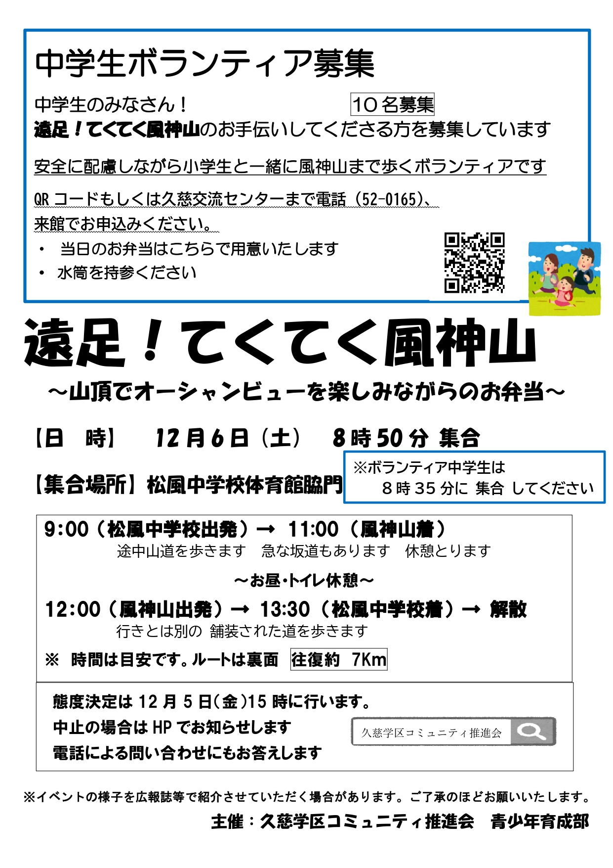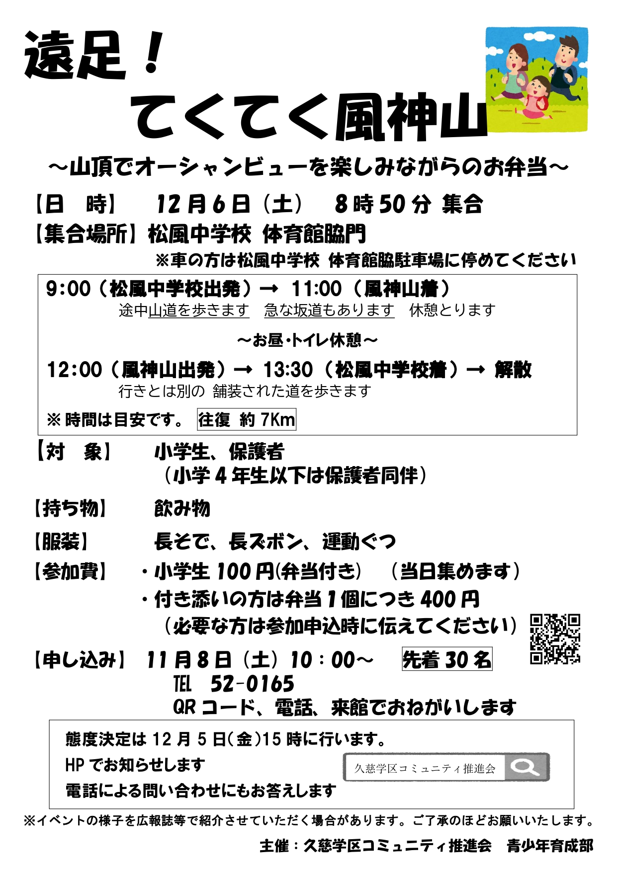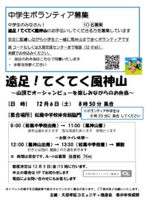 日 時:令和7年12月6日(土)8:50松風中学校体育館脇門集合 ※雨天中止