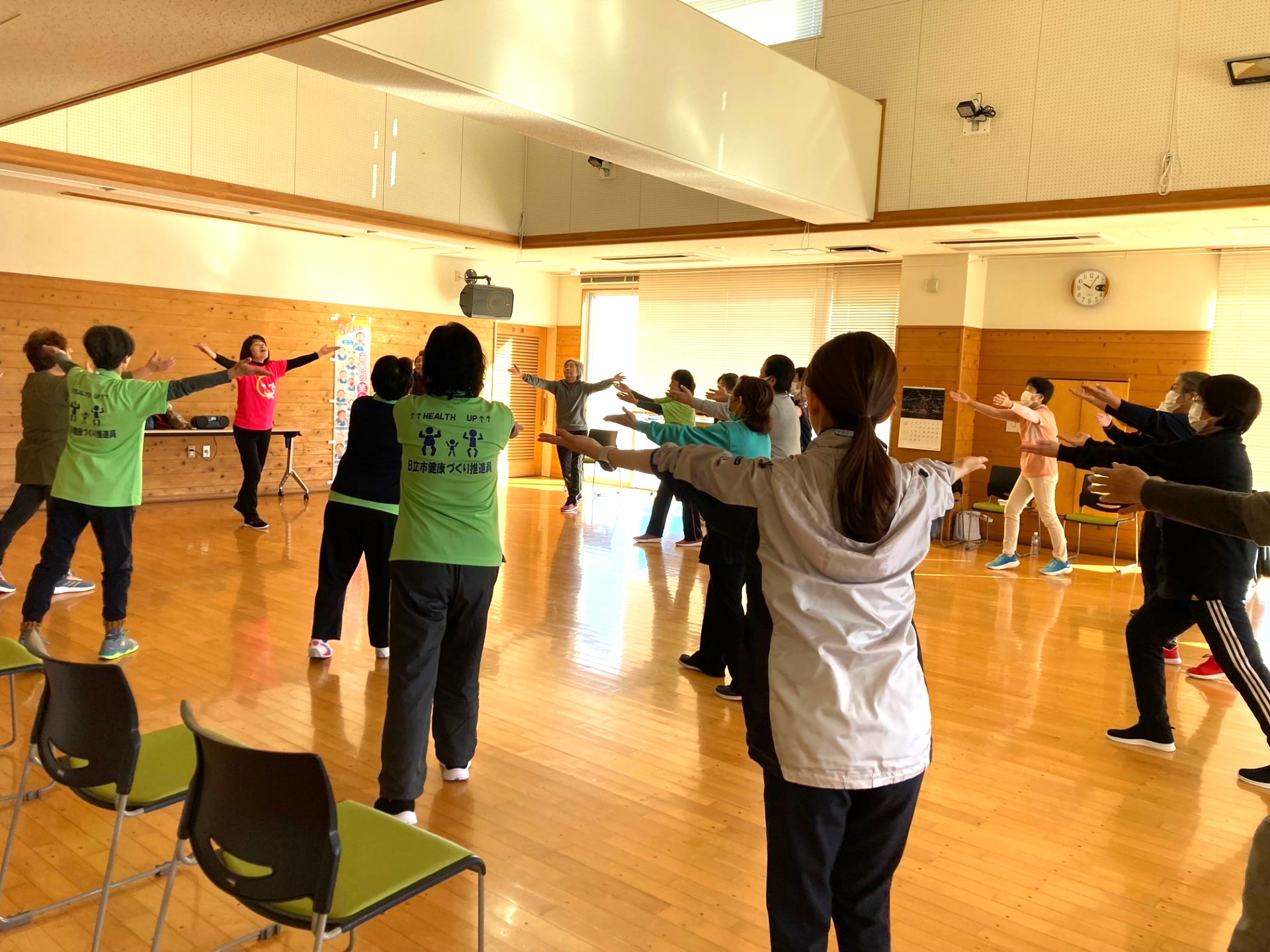 お知らせ ホーム > お知らせ一覧 > 活動 > 【12月6日】健康運動教室閉講式 活動 202412.06 【12月6日】健康運動教室閉講式 日立市健康づくり推進課共催のもと令和6年6月7日(金)に始まった健康運動教室が12月6日(金)に閉講式を迎えました。 全12回にわたって6名の講師にご協力いただき、ヨガやストレッチ、グラウンドゴルフ等、さまざまな講座で参加者に楽しんでいただきました。 全12回、お疲れ様でした! みんなで楽しく♪ 大好評のグラウンドゴルフ ご参加くださった皆様、ご協力いただいた講師の皆様、ありがとうございました。 来年度のご参加もお待ちしております。 健康推進部 前の記事へ 活動一覧にもどる 次の記事へ