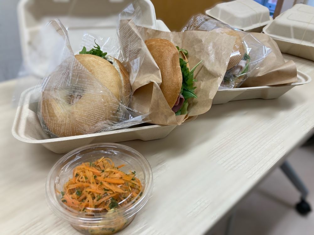 完成品のベーグルサンド&キャロットラペ