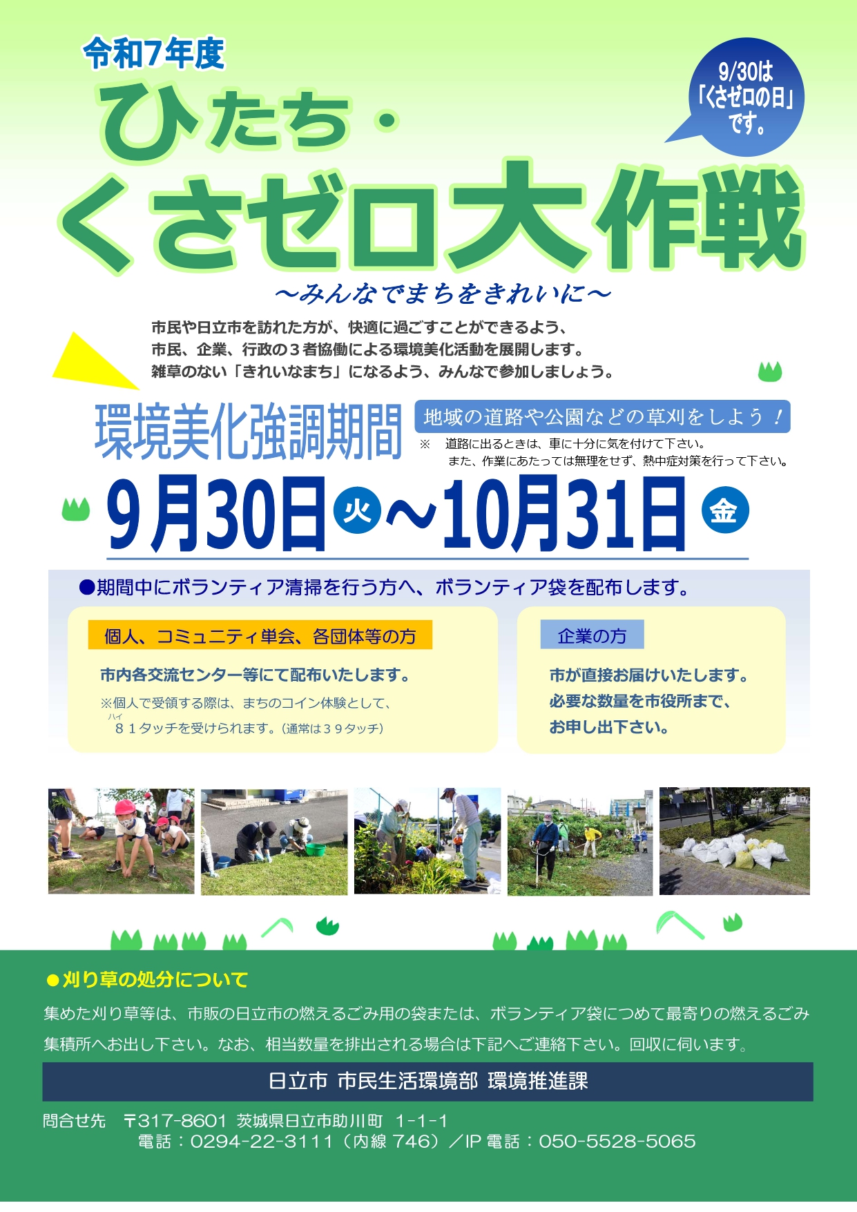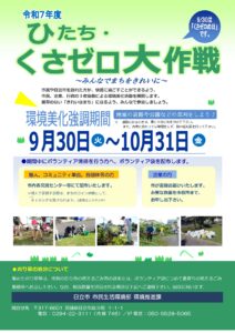 お知らせ ホーム > お知らせ一覧 > 活動 > 【10月11日】ひたち・くさゼロ大作戦 活動 202510.11 【10月11日】ひたち・くさゼロ大作戦 ~みんなでまちをきれいに~ 令和7年10月11日(土)に久慈交流センター北側広場にて「ひたち・くさゼロ大作戦」を兼ねた一斉除草作業を行いました。 雨の中、ご協力いただいた皆様、ありがとうございました。 前の記事へ 活動一覧にもどる 次の記事へ