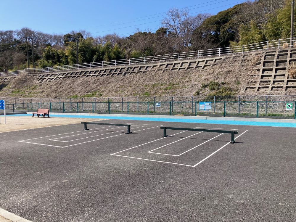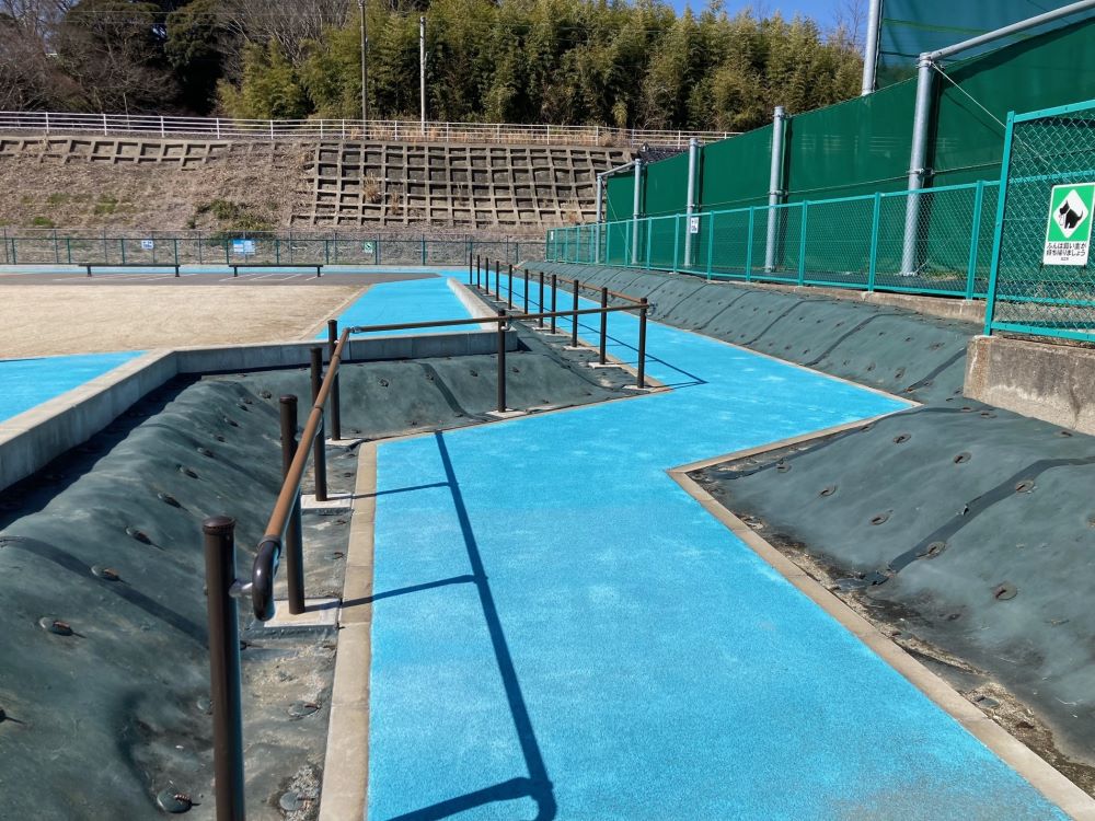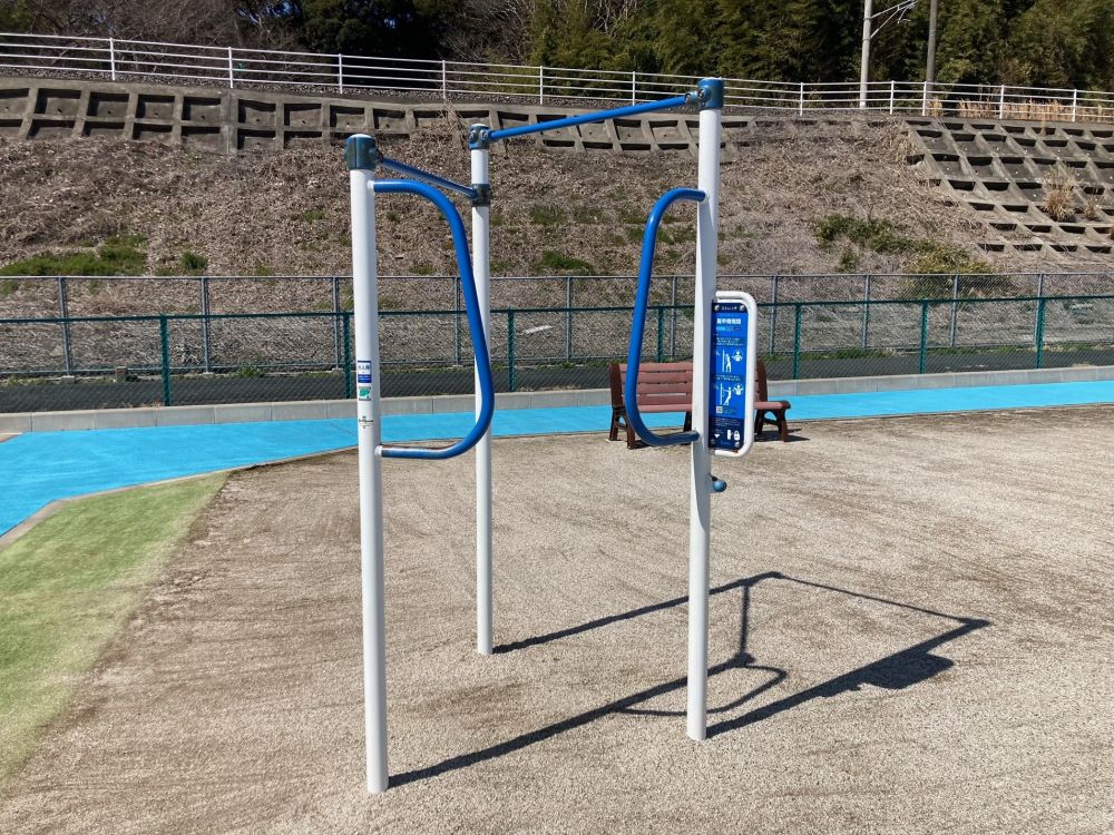 多目的広場の他、滑り止め舗装を施した遊歩道(1周130m)、パンポンコート(2面)、ストレッチ運動ができる健康遊具(3基)が設置されており、さまざまな方にお楽しみいただけます。